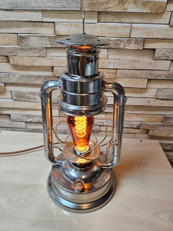 Ancienne Lampe Tempête transformée en lampe actuelle.